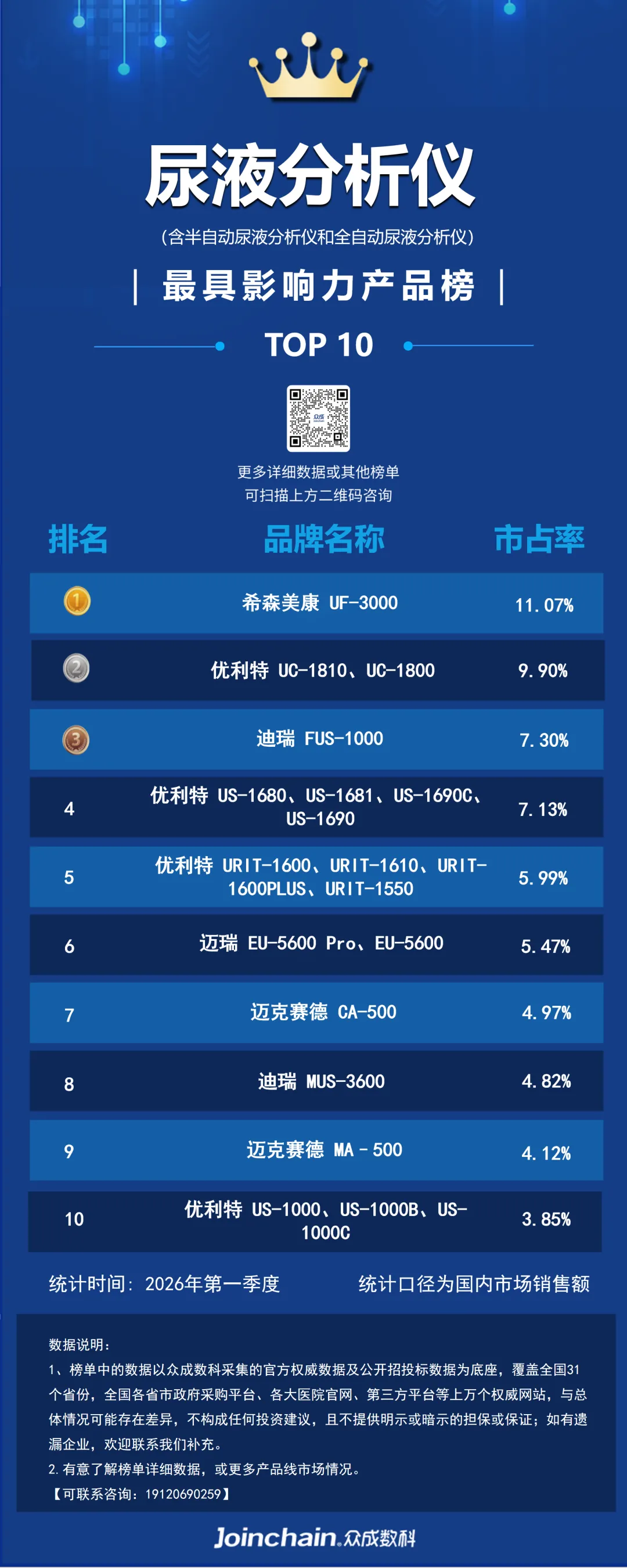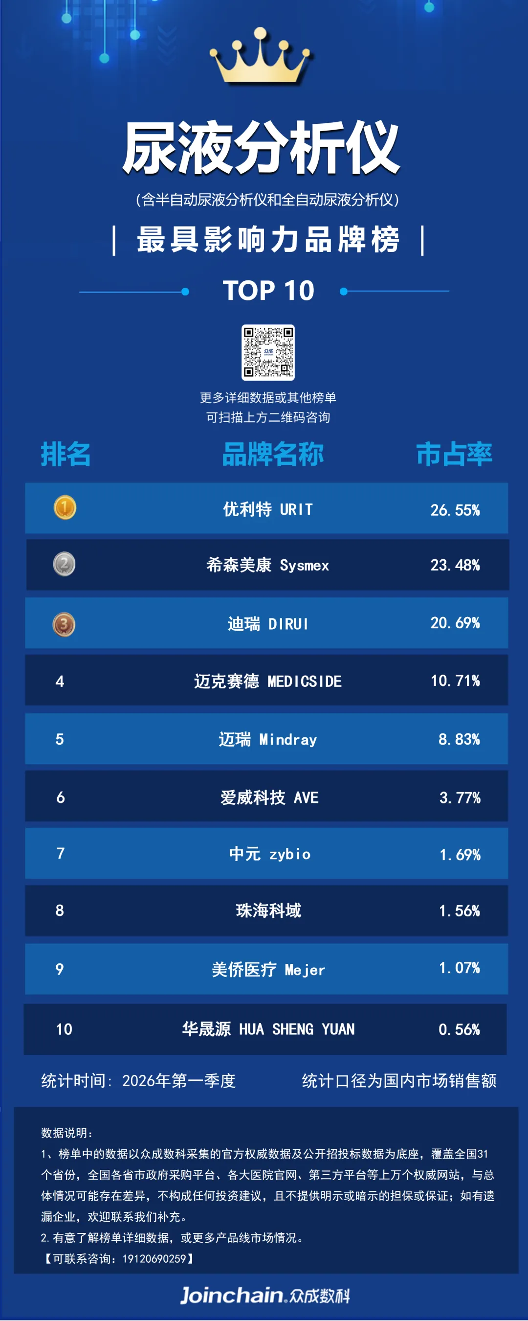 2026年第一季度尿液分析仪最具影响力品牌榜(按照销售金额)