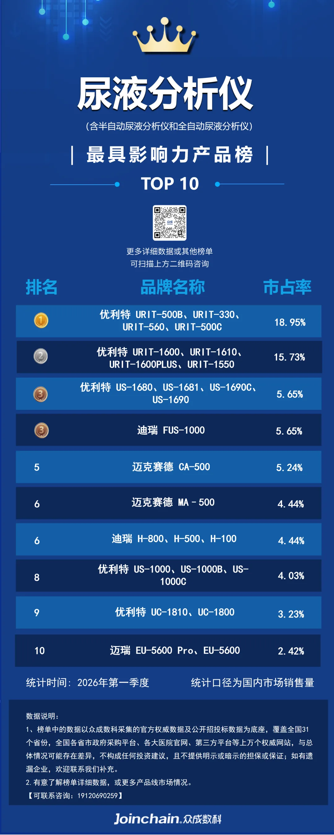 2026年第一季度尿液分析仪最具影响力品牌榜(按照销售量:台/套)
