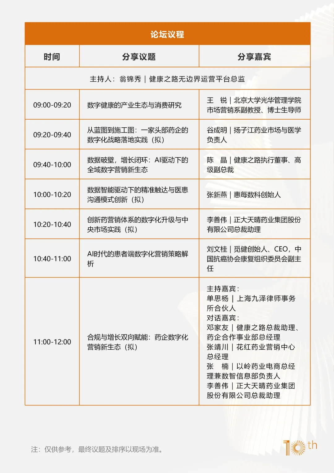 谋共赢:破解合规与增长双重命题:以大咖对话形式,邀请药企、合规机构、技术平台代表共同探讨数字化营销的合规边界与增长路径,推动产业链上下游协同创新。