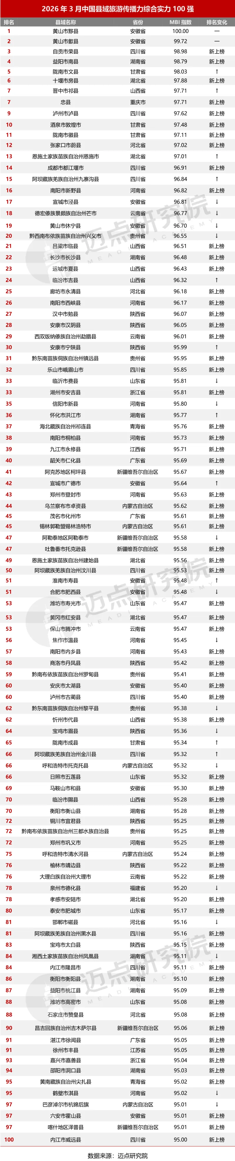 喜报!荣县荣耀上榜2026 年 3 月中国县域旅游传播力综合实力 100 强,位列全国第 3,作为新晋上榜县域,强势跻身全国第一梯队,用文旅传播实力,让 “山水佛城・烟火荣州” 响彻全国!