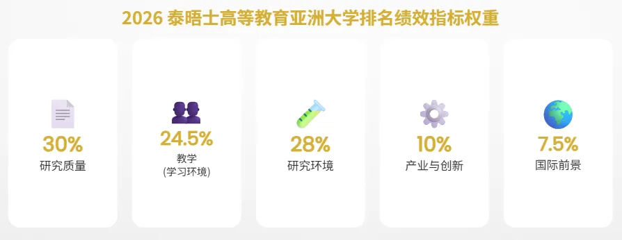 2026泰晤士高等教育亚洲大学排名绩效指标权重图