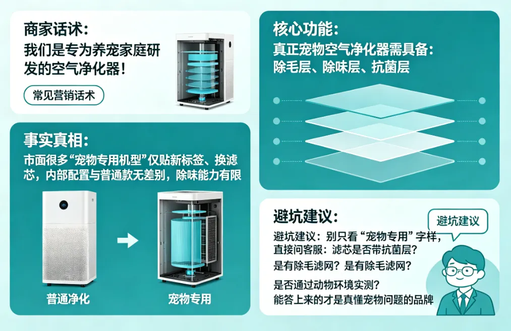 不少所谓宠物空气净化器其实只是换个滤芯、加个贴纸,内部配置与普通款无异。