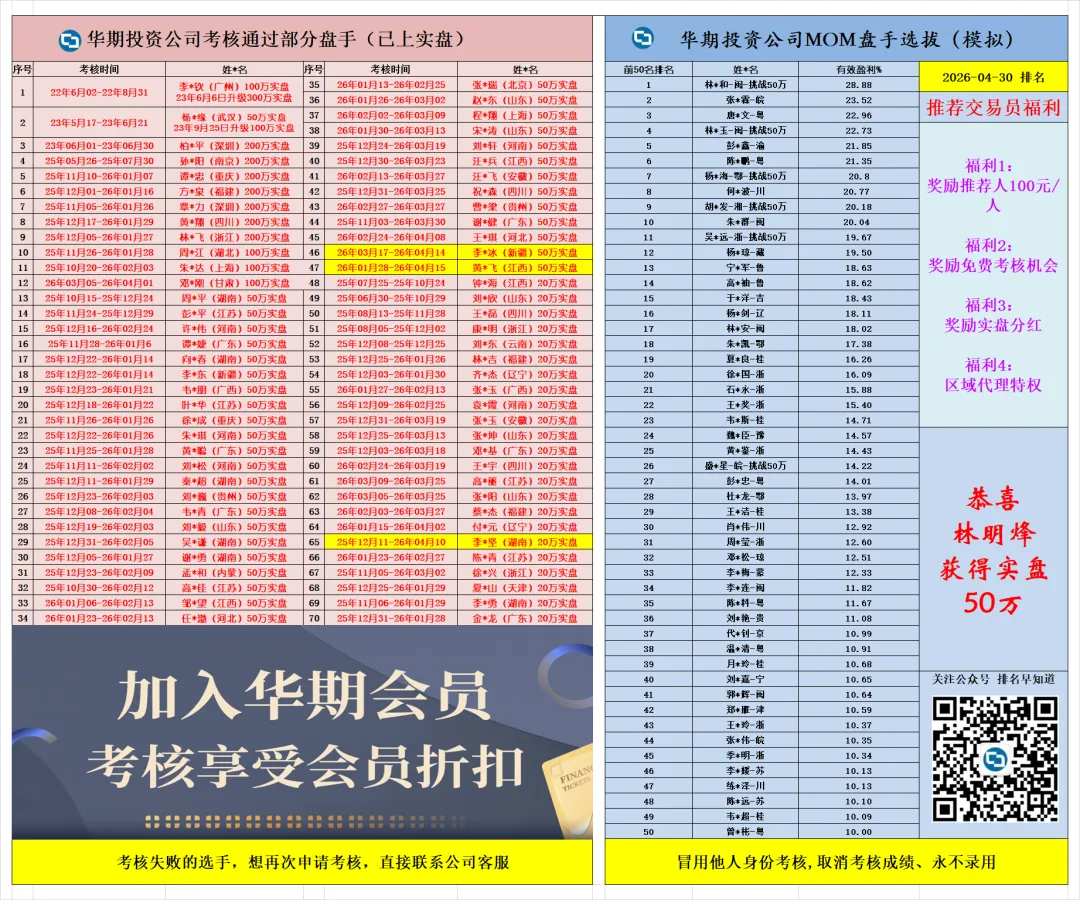↓华期考核前50名排行榜↓