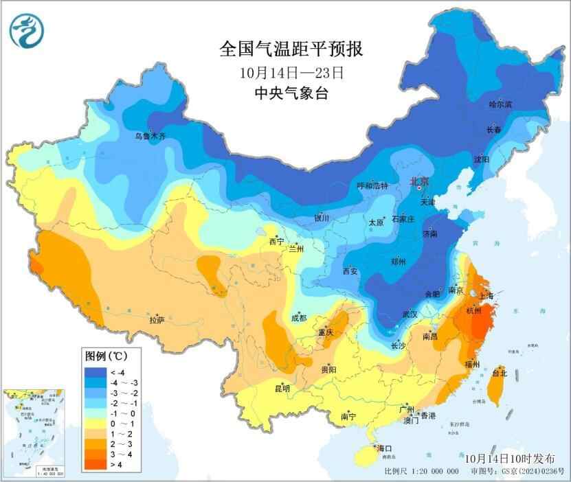 根据中央气象台10月14日预计,较强冷空气在14日夜间至15日主要影响新疆、内蒙古西部和甘肃西部等地,16日至19日自西北地区东部开始影响我国大部地区;过程平均气温降温幅度一般有4~8℃,其中内蒙古中西部、华北北部、东北地区南部以及湖南、贵州等地部分地区降温10℃以上;上述地区伴有4~6级风,阵风7~9级。