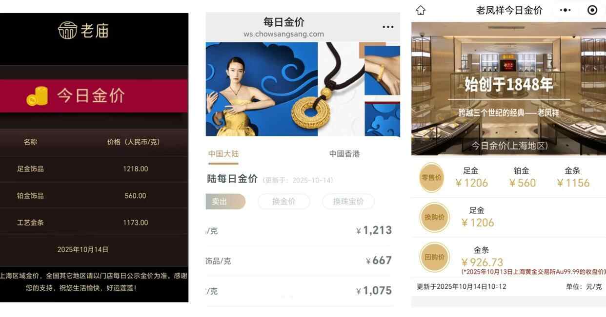 10月14日,国内各品牌金饰克价纷纷上涨,突破1200元关口。