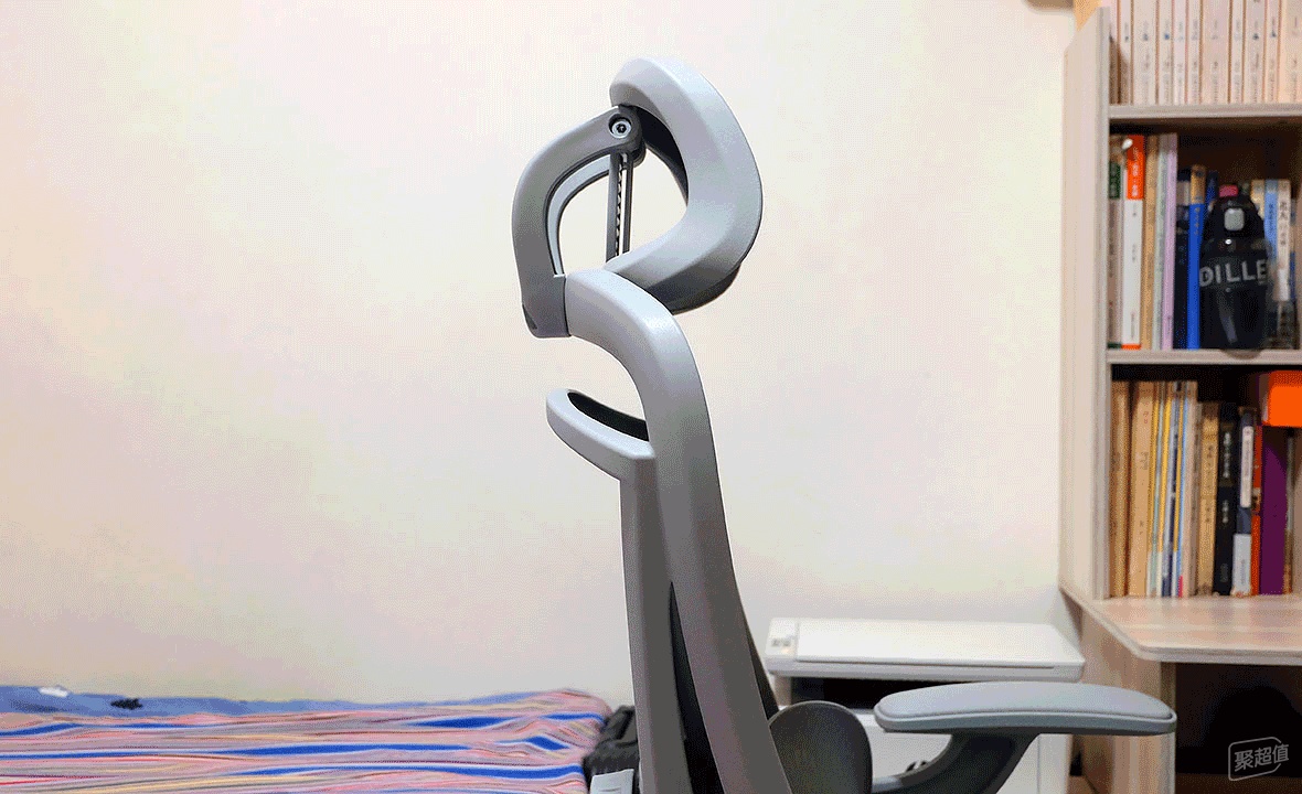恒林逆袭者工学椅的头枕能转45°,还支持7.5cm的升高,低头写笔记时往前转点,仰头查资料时往后调点,脖子始终是松的。