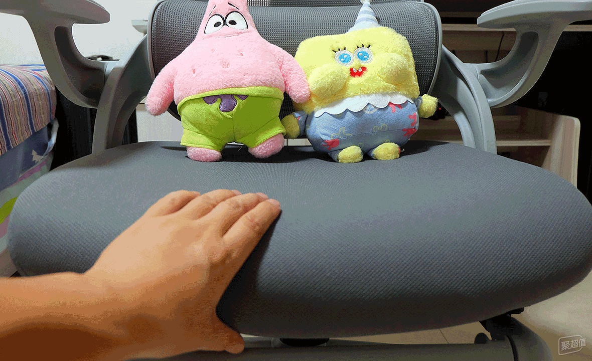 而恒林逆袭者工学椅的坐垫足足53cm宽,还有9cm厚的海绵,高弹解压,分散臀部压力的同时坐上去还能随便跷二郎腿。而且网布还透气,即使是夏天坐一下午也不闷汗。