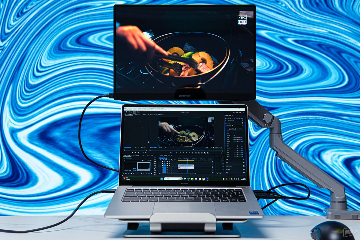 经常剪辑的朋友可能遇到过,在笔记本上看的视频画面和实际输出的视频画面差异比较大,原因是部分高性能游戏本屏幕没有校准,并且色域只支持SRGB,通过连接CFORCE 116Q预览画面,因为其4k+分辨率和DCI-P3色域覆盖的关系,可以更好的还原视频真实色彩,把它作为预览屏幕还挺合适的。
