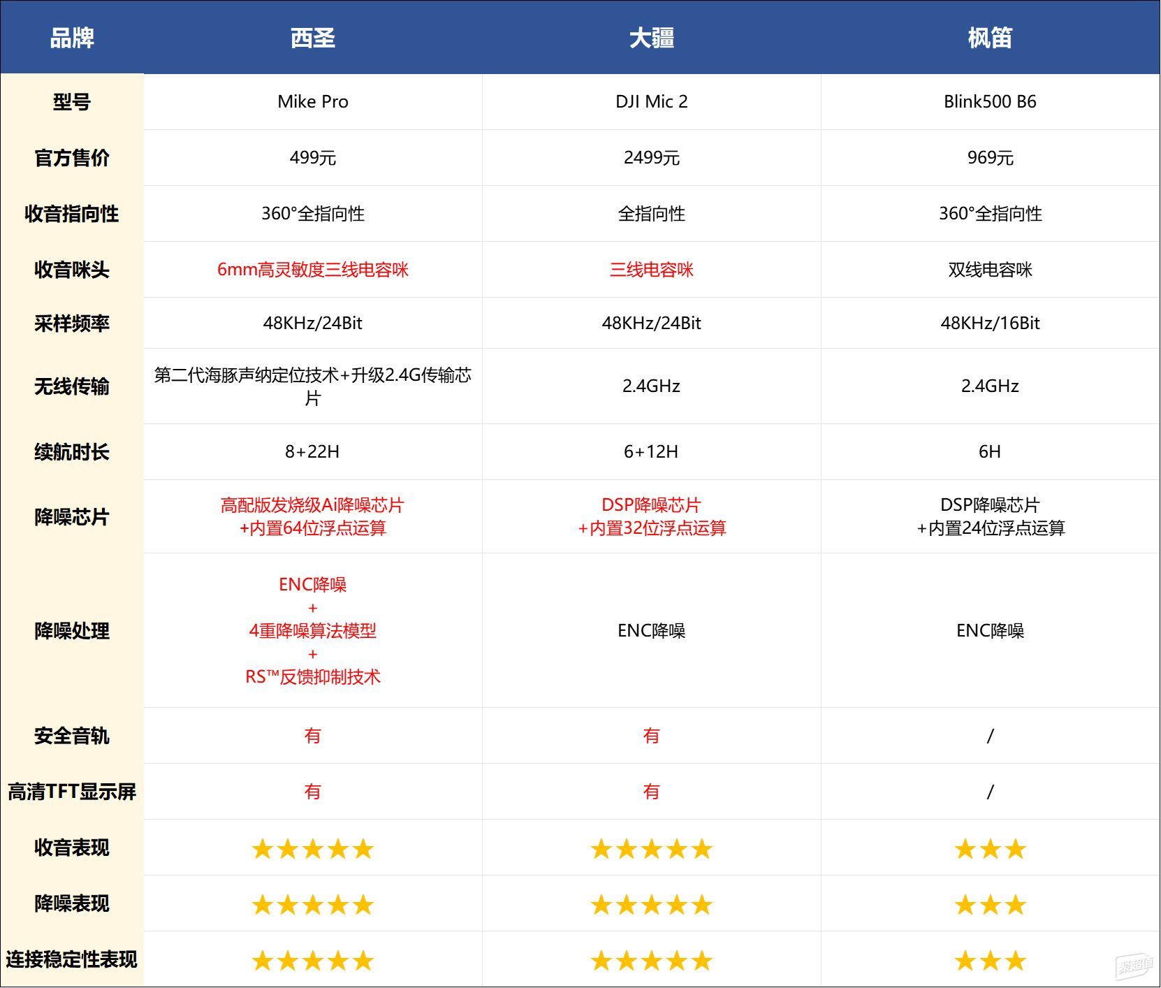 稳定性表现优秀:通过实测对比发现,西圣Mike Pro和大疆这两款麦克风的稳定性还是很不错的,在面对不同距离以及环境因素的干扰下,依旧能够保持稳定的收音效果,中途也没有出现延迟或者断连的情况。尤其是西圣Mike Pro这款麦克风搭载了第二代海豚声纳定位技术配合升级的2.4G传输芯片,即便是在200m开外的地方,也能够保持稳定清晰的收音效果