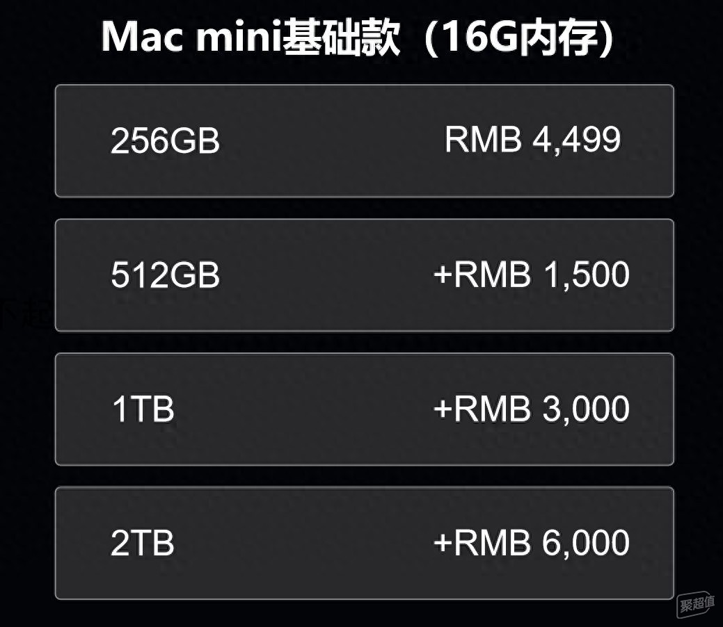 就拿Mac mini来说吧,256G的版本就要4499元起,而如果你想要升级到512G,就得再多付1500大洋,至于那令人向往的1T版本,加价更是高达3000!这样的价格策略,让多少想要体验大存储空间畅快感的朋友望而却步,只能对着心仪的设备唉声叹气。