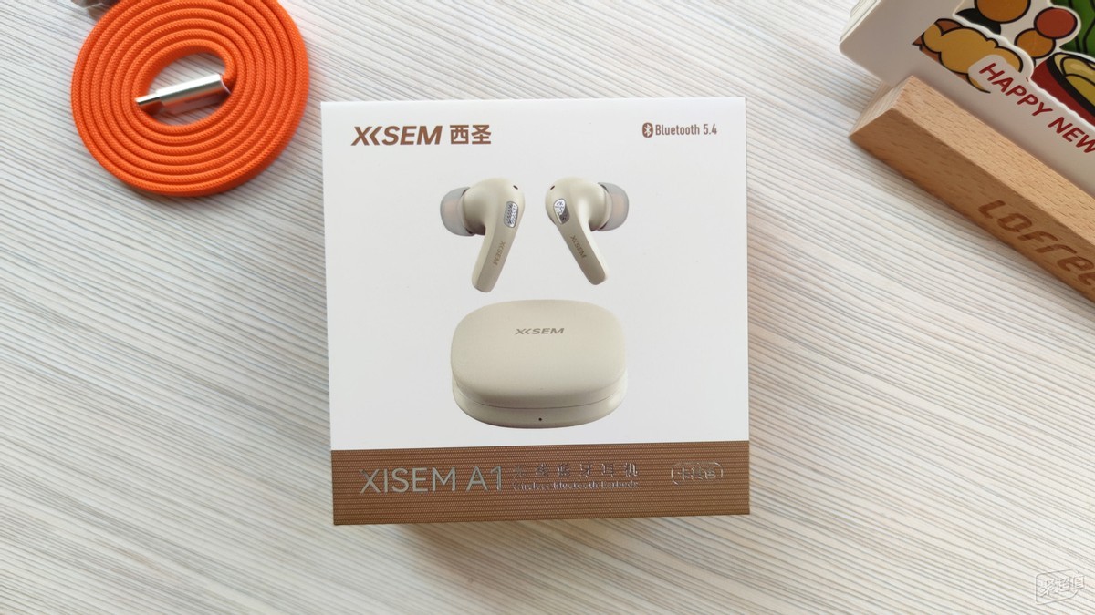 西圣A1蓝牙耳机的外包装设计也是主打卡其色,耳机图片与实物完全一模一样。