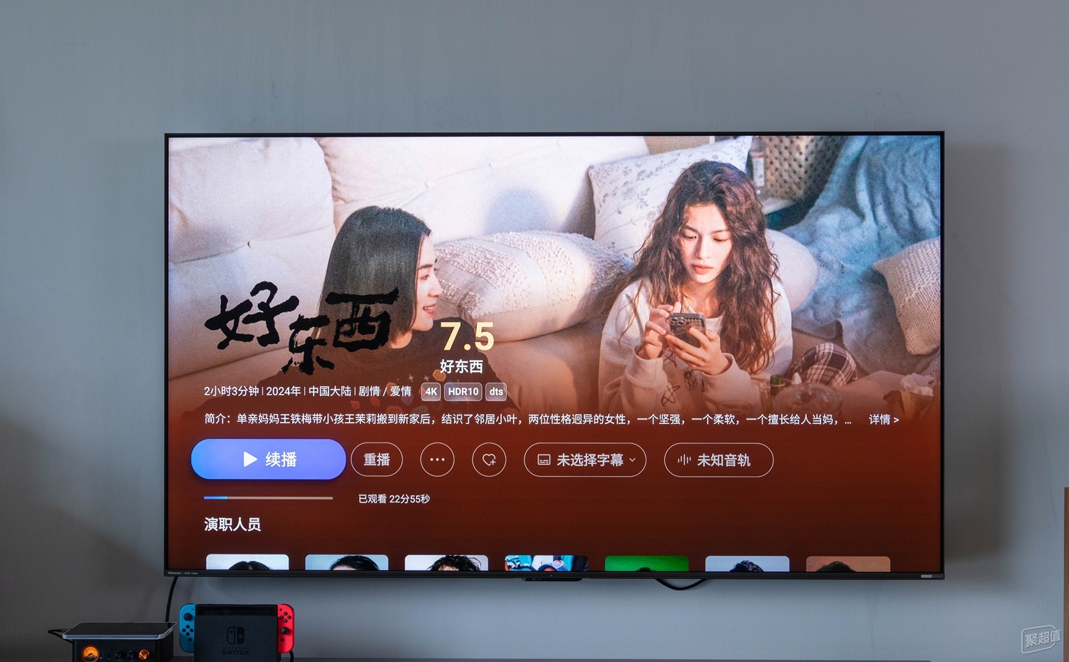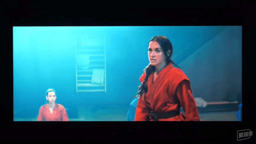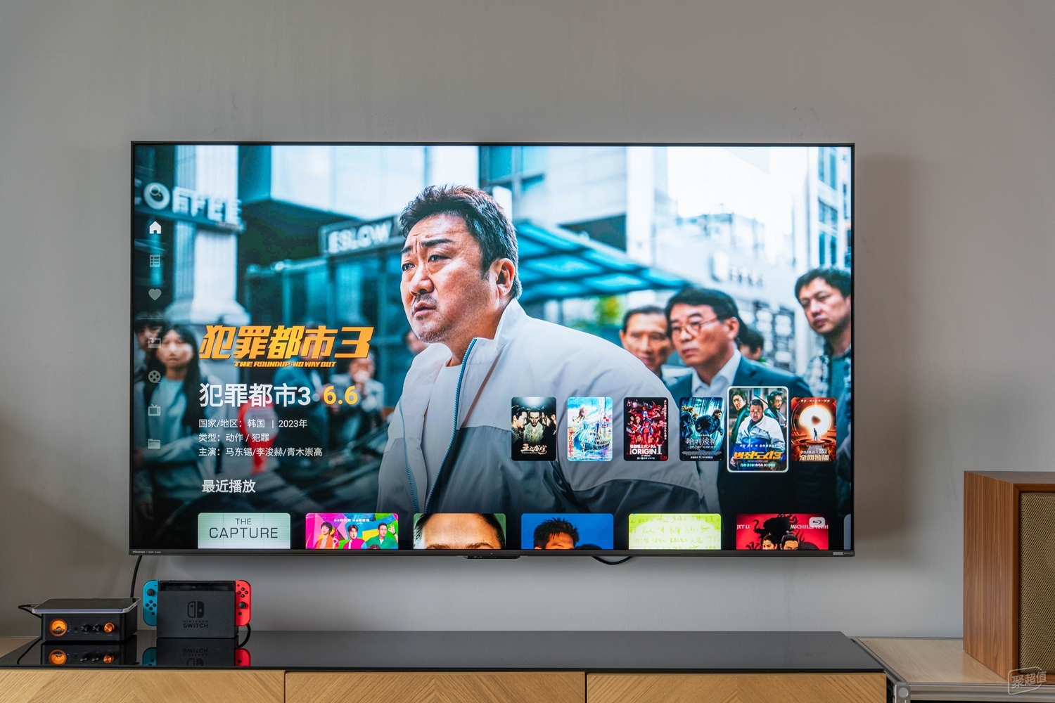 墨晶屏一流的亮度与色彩表现,在实际观看中非常舒适,AGLR膜并没有模糊、成像不清晰的情况,还能黑得非常彻底,有很好的通透感,非常适合普通家庭使用,符合它走量小钢炮的定位。