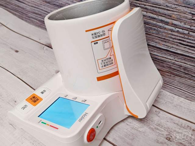 打开包装盒,第一眼就被海尔血压计简洁流畅的设计所吸引。它没有花哨的装饰,白色圆润的机身搭配黄橙色主色调,特别是臂筒内柔软亲肤的内衬材质,摸起来非常舒服。老妈第一次使用时,就特别提到:“这个臂筒式绑着舒服,不像以前那个绑带式勒得慌。”